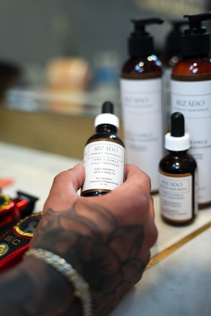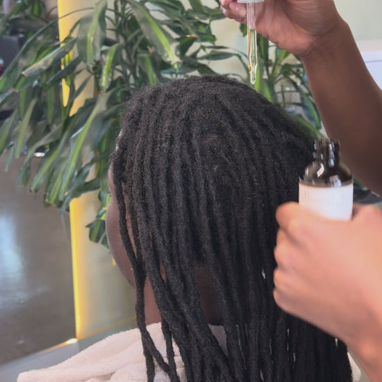 The Type 4 Scalp Oil is made with heavier oils such as Castor Oil and Soybean Oil in order to strengthen and nourish your roots inside out. This formulation aims to stimulate hair growth, protect from breakage and hydrate your scalp without causing buildup. This Scalp Oil also uses Rosemary oil and Peppermint oil to stimulate hair growth and combat dandruff.Β